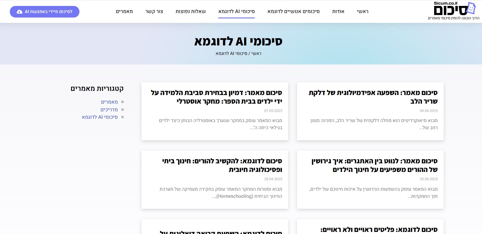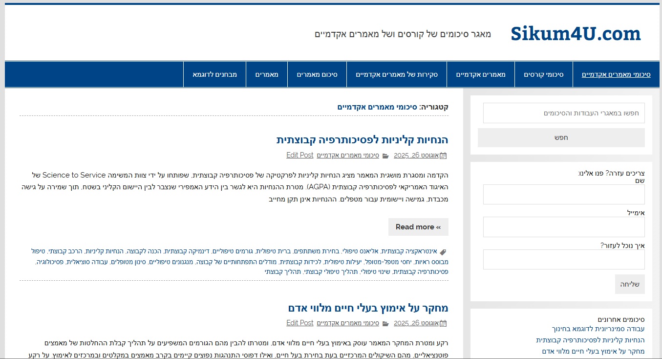 מאגרי סיכומים של מאמרים אקדמיים